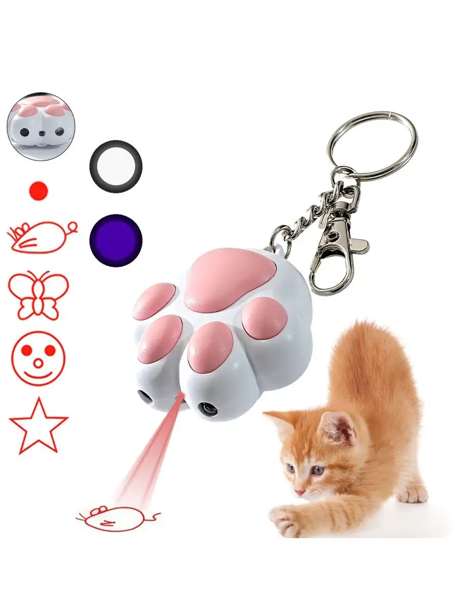 Лазерная указка для кошек заинересует питомца ярким огоньком спроекцией с 5-ю видами изображений и ультрафиолетовой лампой. Игрушка для питомцев заряжается с помощью USB. Лазер для домашних любимцев имеет 5 встроенных проекций: точка, мышь, звезда, смайлик, бабочка. Благодаря цепочке лазер может служить брелоком и с легкосттью прикрепиться к ключам, рюкззаку и пр.