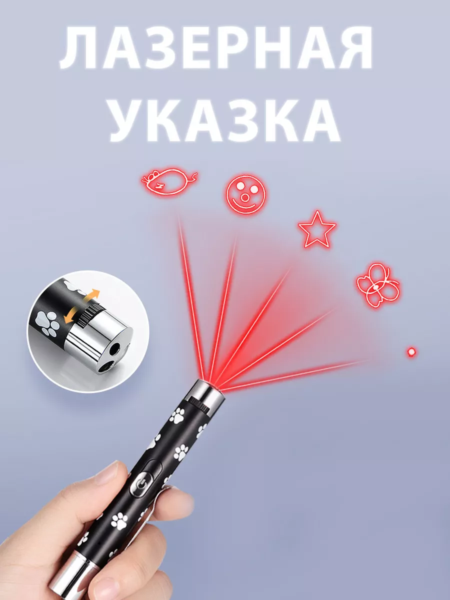 Эта лазерная указка 7-в-1 идеально подходит для игры с вашим любимым питомцем. Красный луч указки идеально подходит для игры с домашними животными, а пять встроенных возможных проекций (звезда, бабочка, смайлик, мышка и обычная точка) разнообразят и развлекают игру. Проектор имеет три режима работы: лазерная указка, ультрафиолетовый фонарик и светодиодный фонарик. Можно приучить кота к когтеточке (когтедралки). Важно отметить, что аккумулятор фонаря встроенный и легко заряжается от любого USB-адаптера (ноутбука, power bank или автомобильного зарядного устройства), поэтому абсолютно не нужны батарейки, ведь это более экологичный способ использования прибора, значительно экономящий семейный бюджет. А вы и ваши питомцы останетесь довольны на 100%. Проверенный и испытанный переключатель включения/выключения – это блокируемый переключатель, а не кнопка, которую нужно постоянно нажимать. Съемная металлическая клипса и ремешок на запястье для удобства использования и хранения указки.Гарантия на палочку 1 месяц. Мощность 5 мВт, что делает вашу игру с домашними животными безопасной. Идеальное дополнение к подаркам для владельцев домашних животных: для женщин, мужчин, матерей, отцов, сестер, братьев, любимых, мужей, жен, друзей, коллег на дни рождения, юбилеи, день водителя, 23 февраля, 8 марта, день защитников Отечества, 14 февраля, день Святого Валентина, день всех влюбленных, новый год, рождество без всякого повода. .